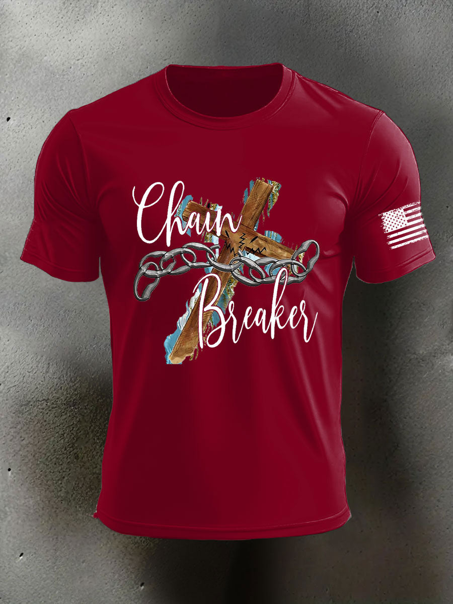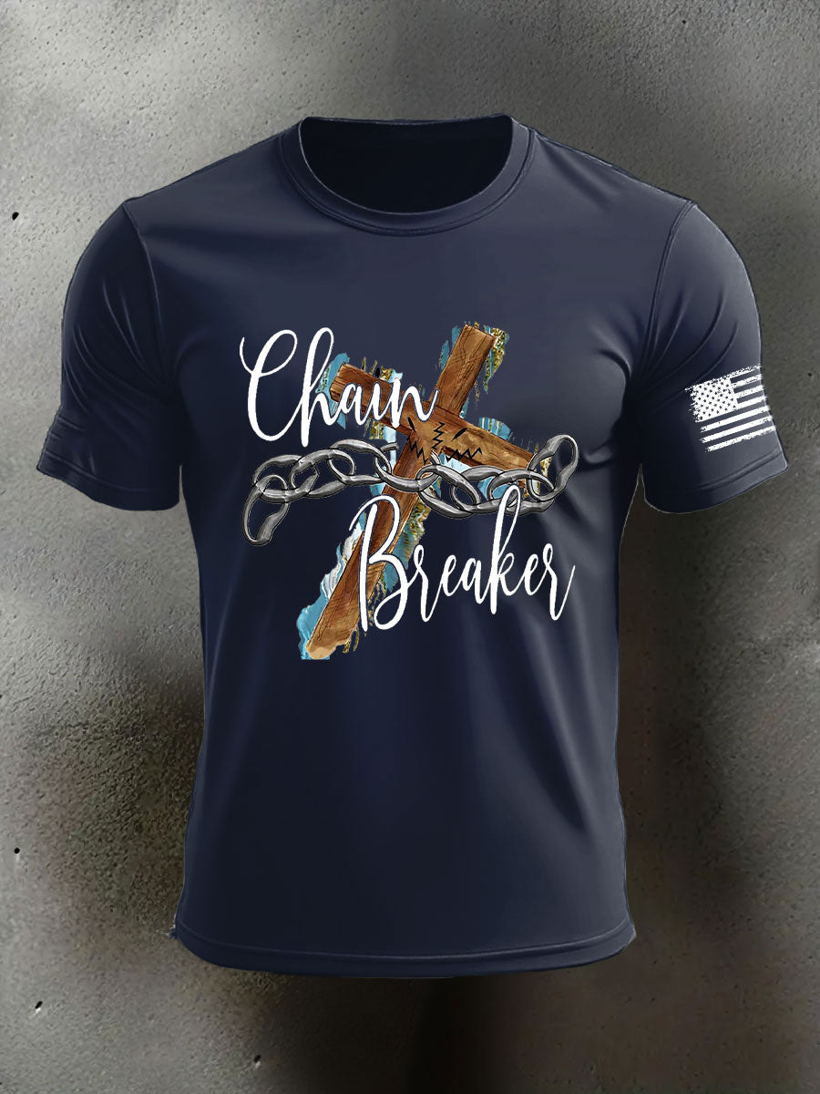 Men's Chain Breaker With Cross Print Casual T-shirt