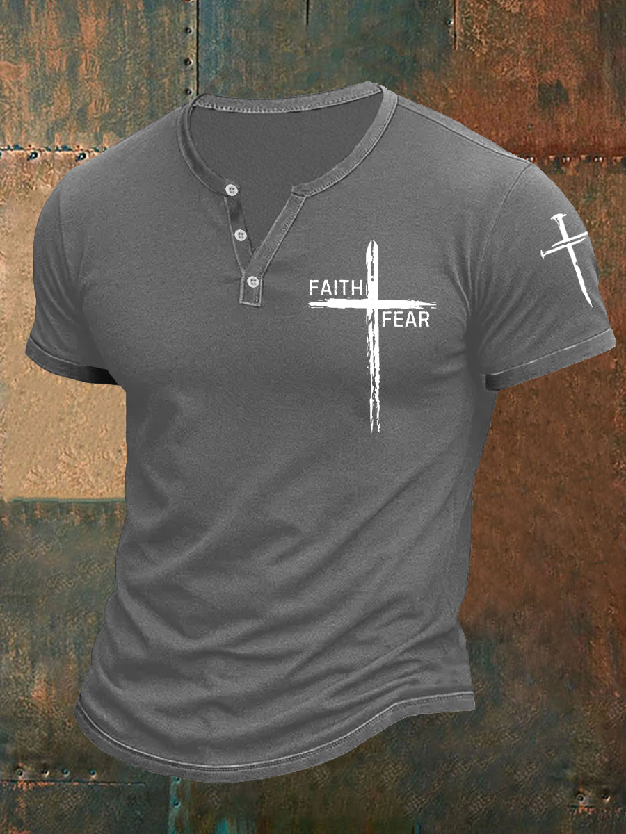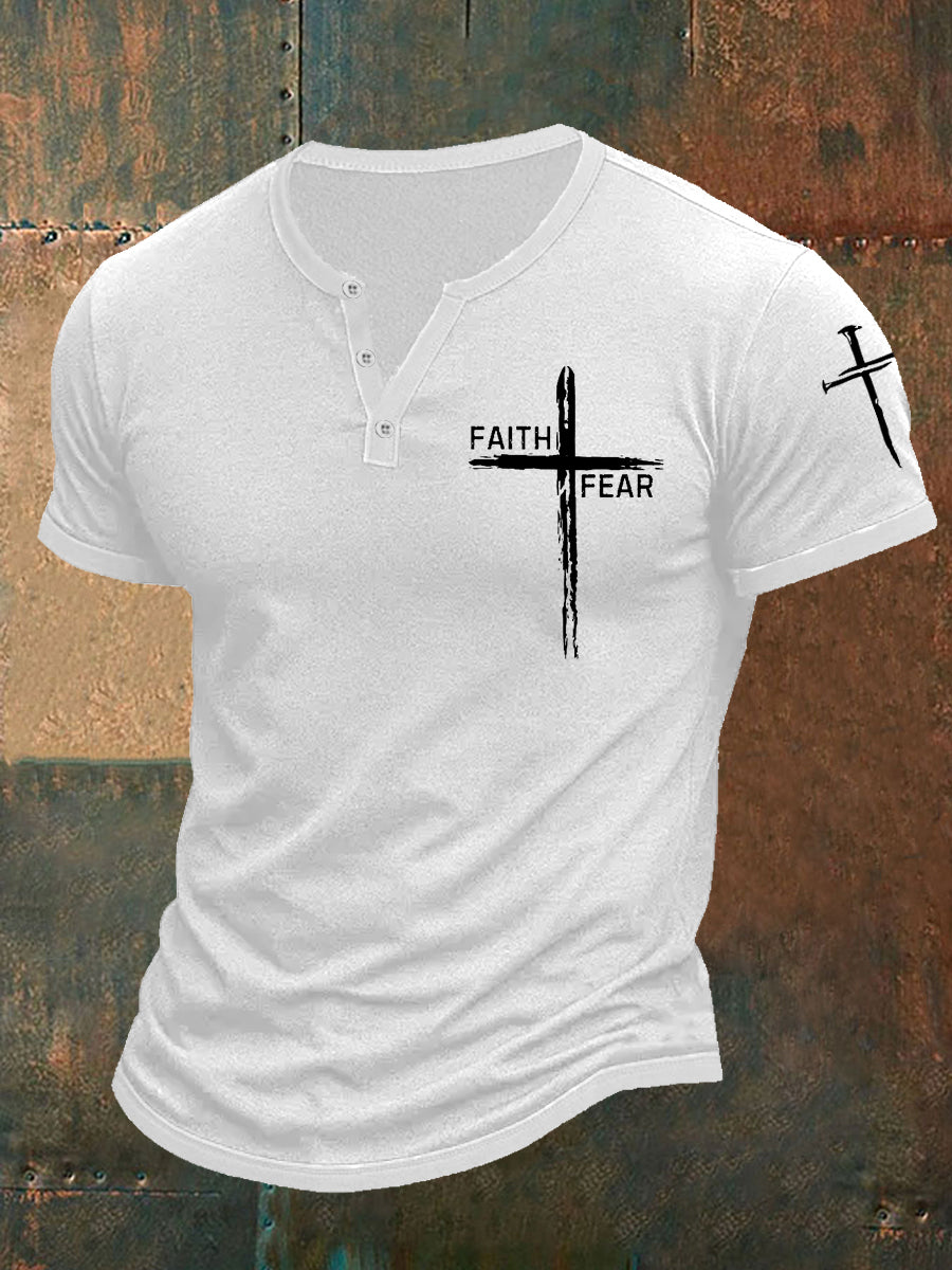 Men's Faith Over Fear Cross Faith Casual Buttons Tee