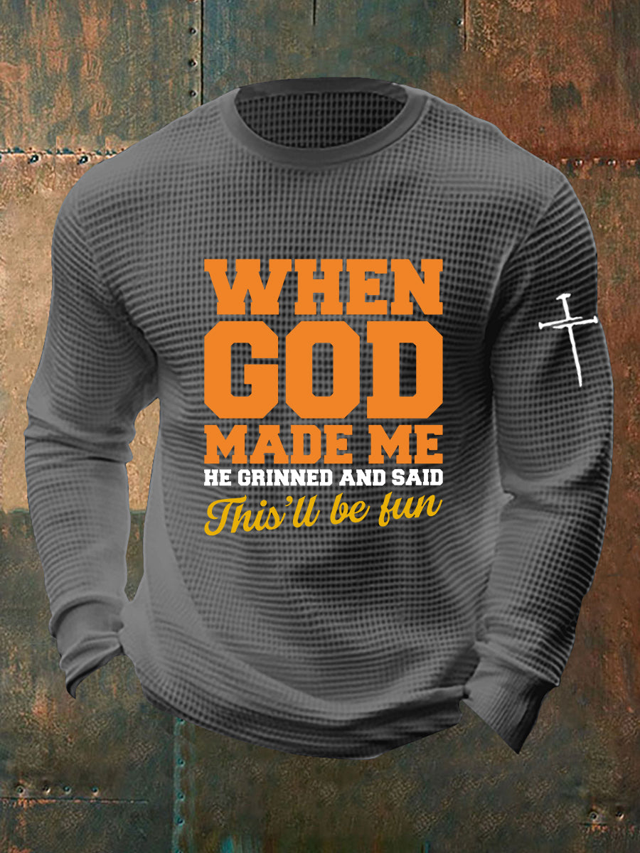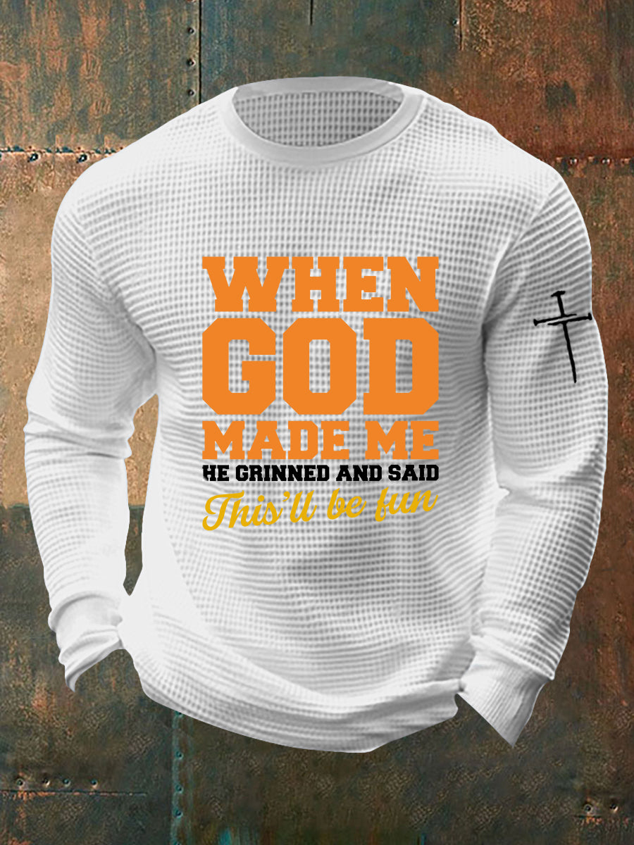 Men's Funny Christian When God Made Me Waffle Long Sleeve T-Shirt