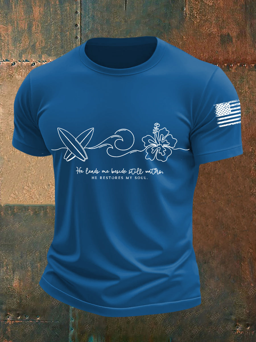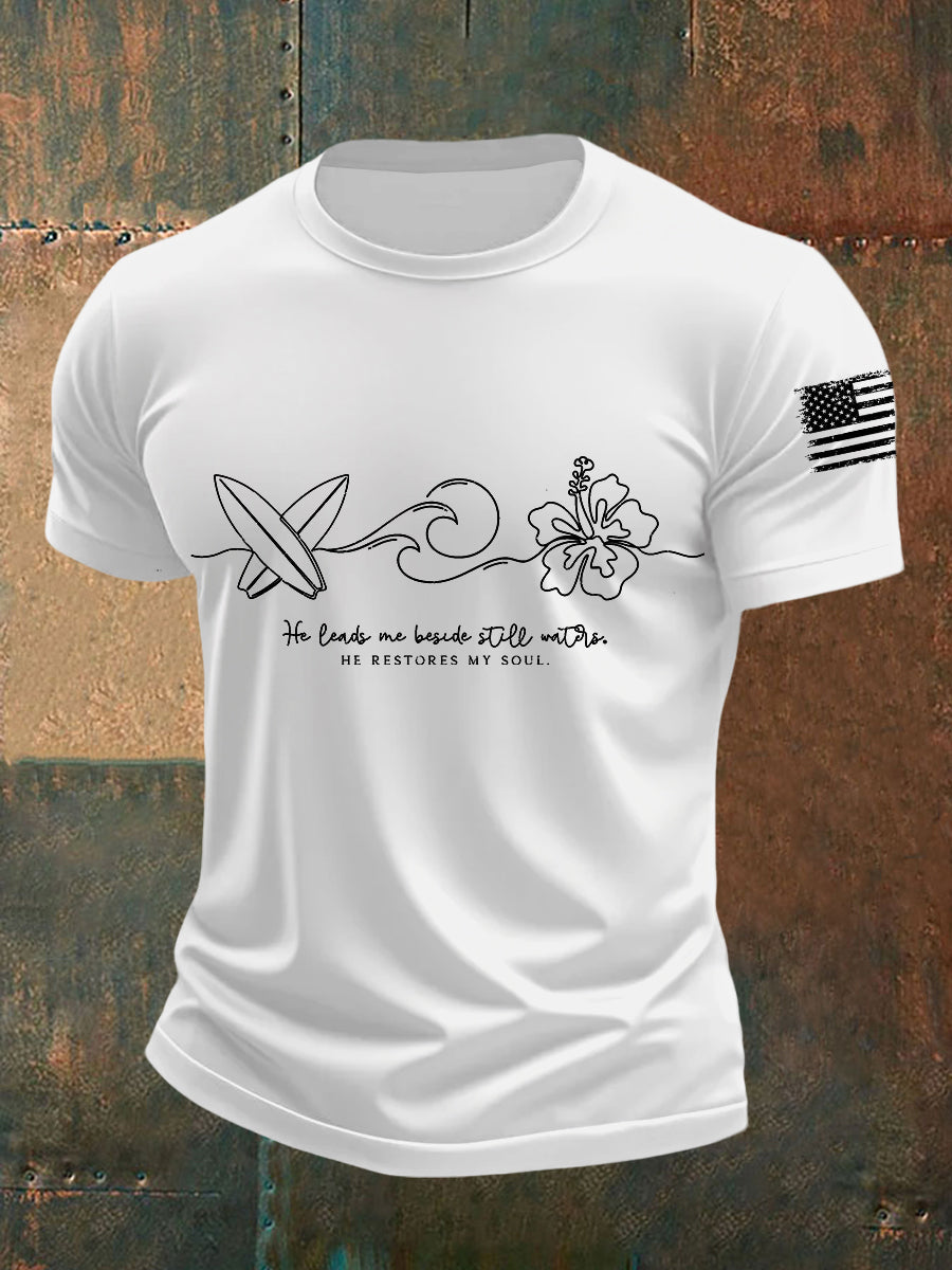 Men's He Leads Me By Still Waters He Restores My Soul Short-sleeved T-shirt