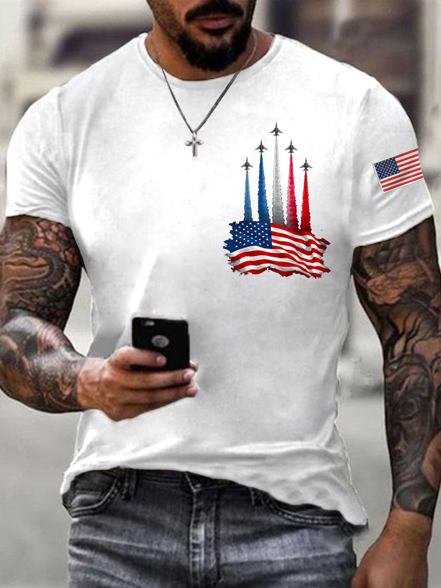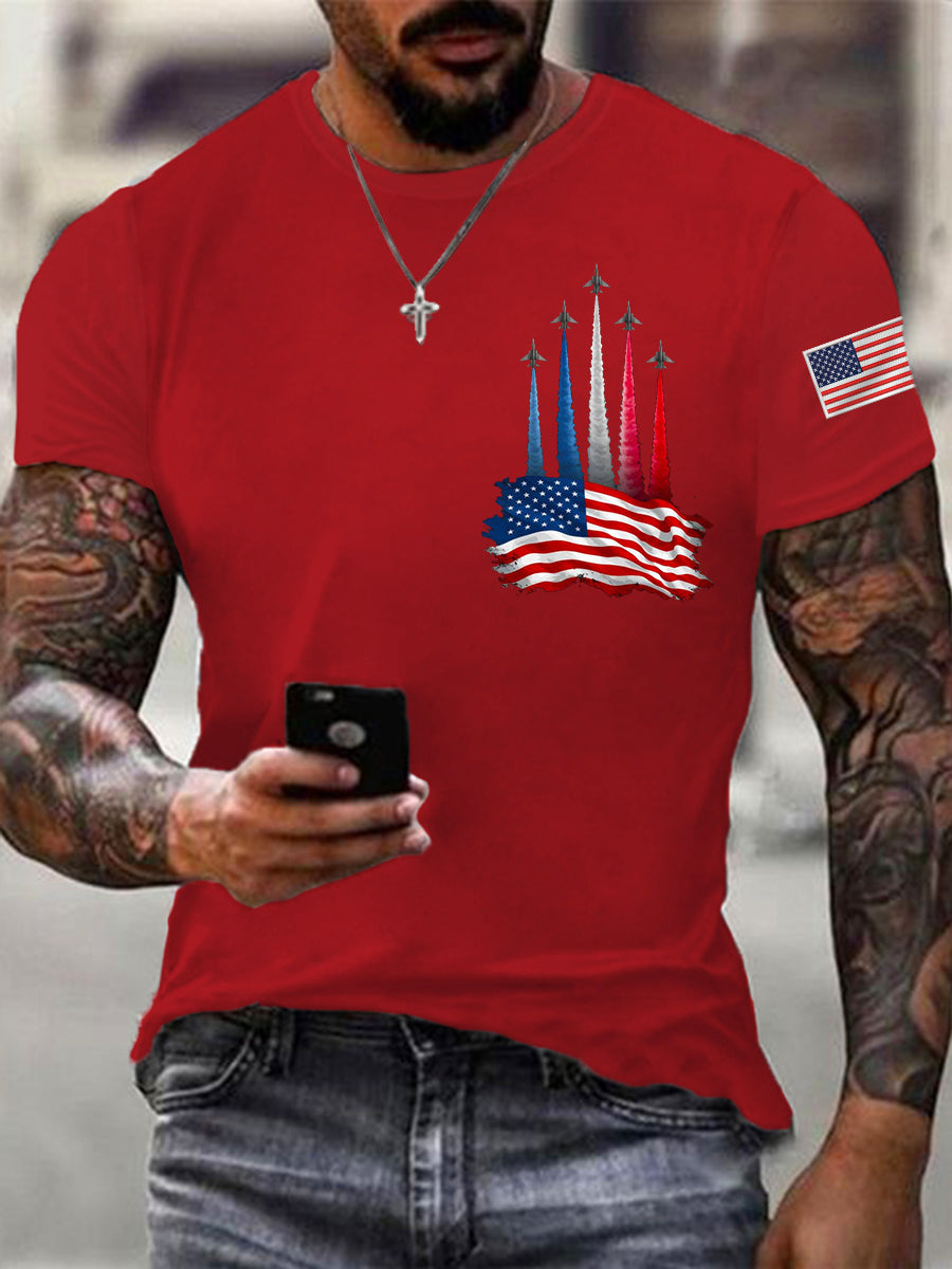 Men's Independence Day American Flag Jet Plane Print Casual Tee