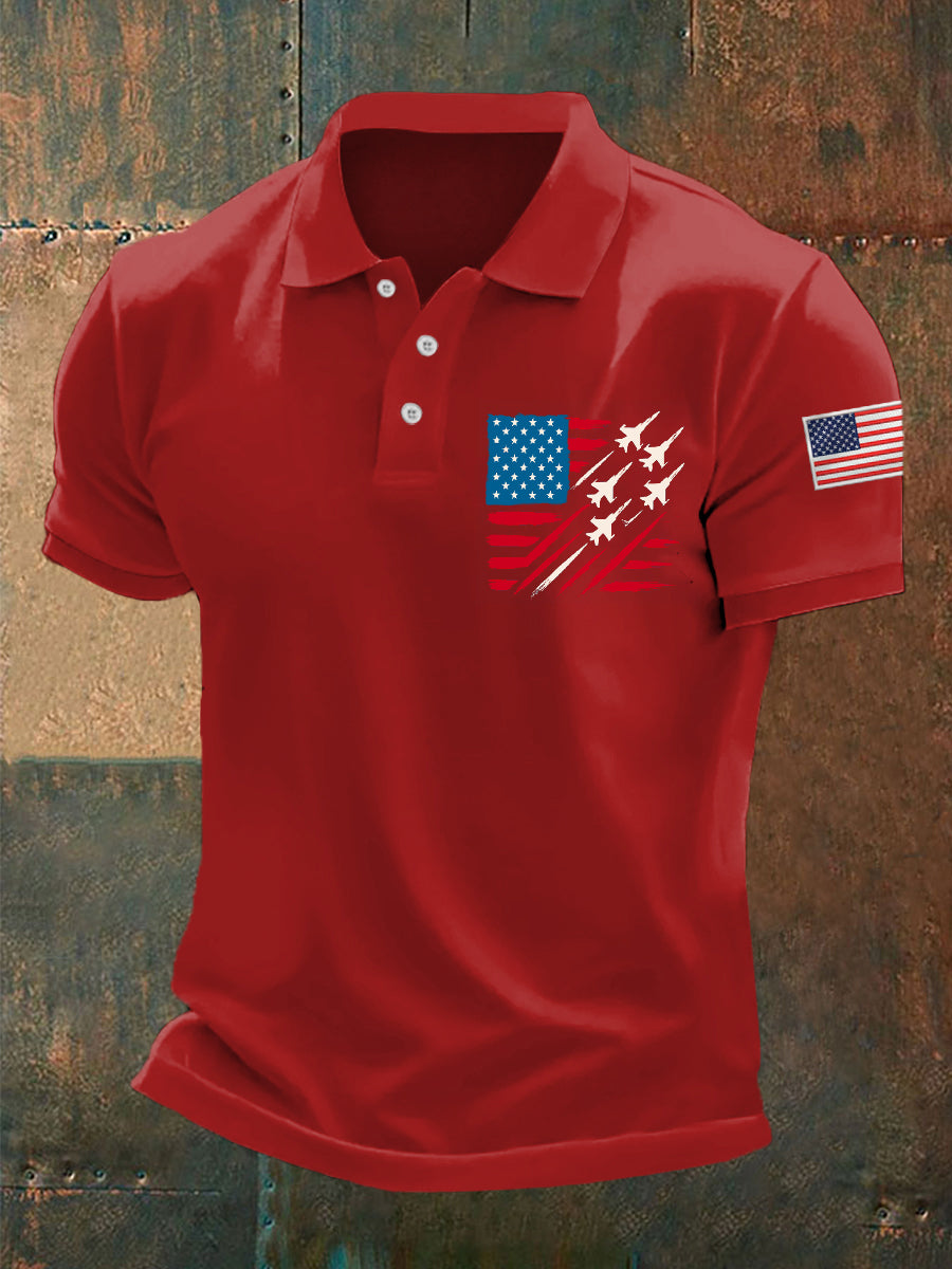 Men's Independence Day American Flag Jet Plane Print Casual Top
