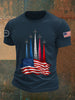 Men's Independence Day American Flag Jet Planes Print Casual Tee