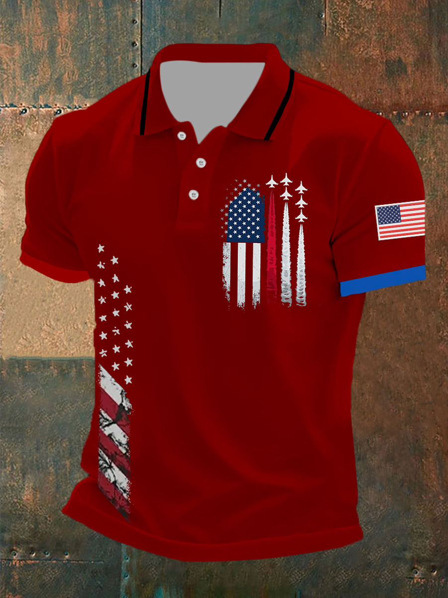 Men's Independence Day American Flag Jet Planes Print Casual Top