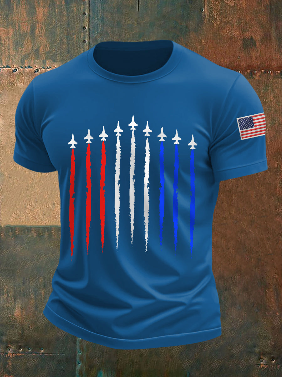 Men's Independence Day Retro Jet Plane Print Casual Tee