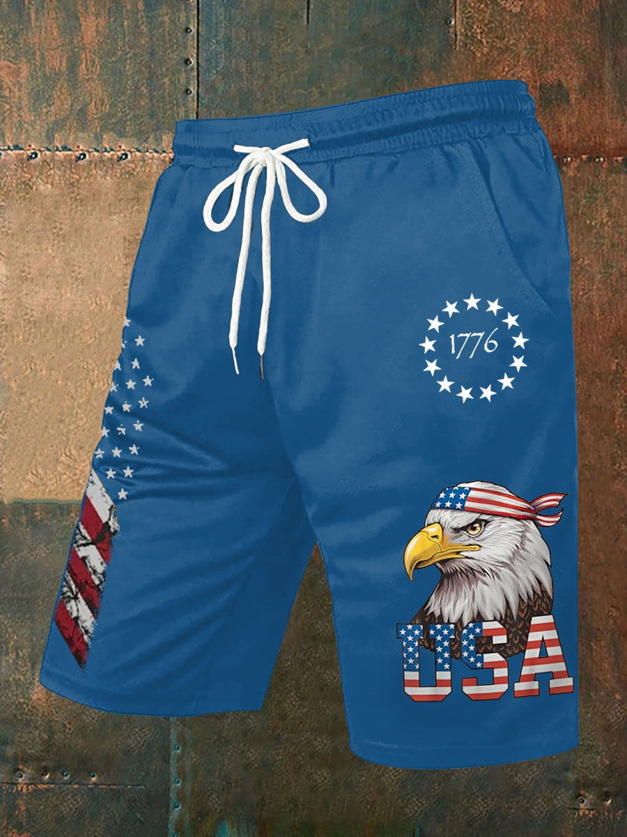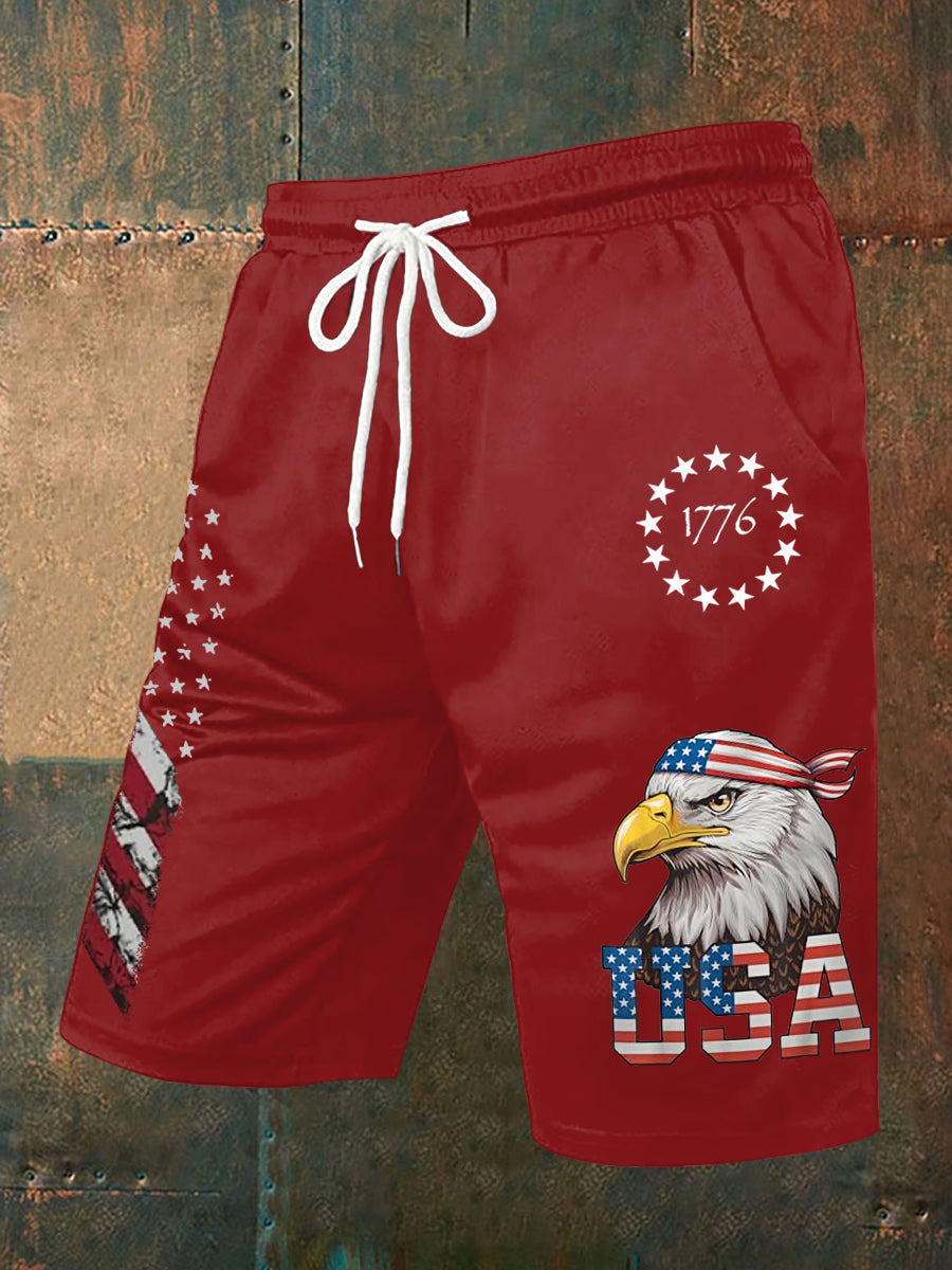 Men's Independence Day USA Flag Bald Eagle Print Casual Shorts
