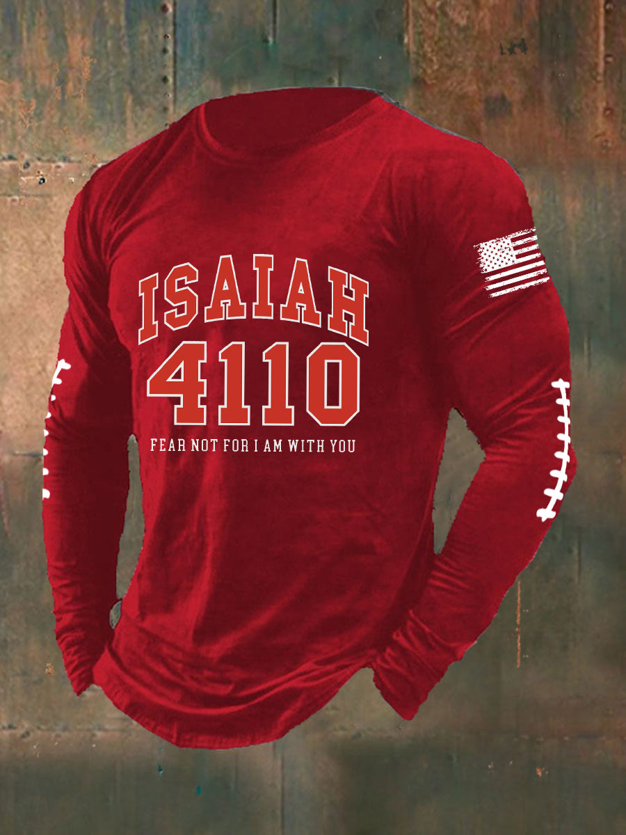 Men's Isaiah 4110 Fear Not For I Am With You Football Long Sleeve T-shirt