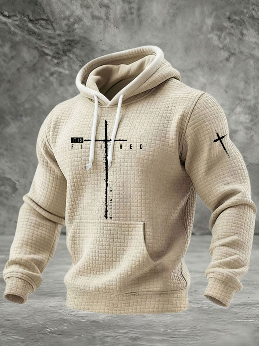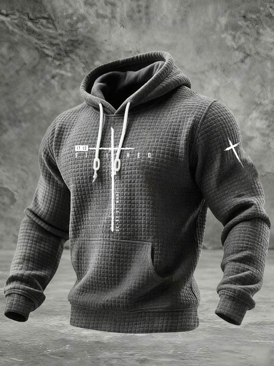 Men's It Is Finished Cross Waffle Print Hoodie