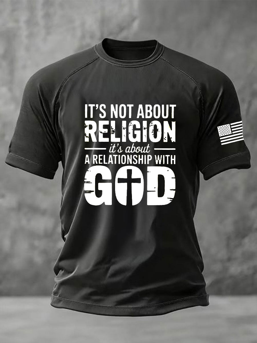 Men's It's Not a Religion It's a Relationship Faith Cross Short Sleeve T-shirt