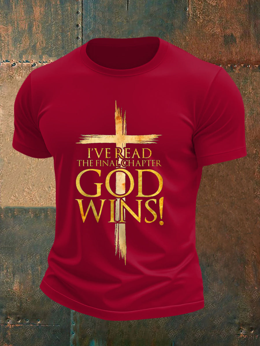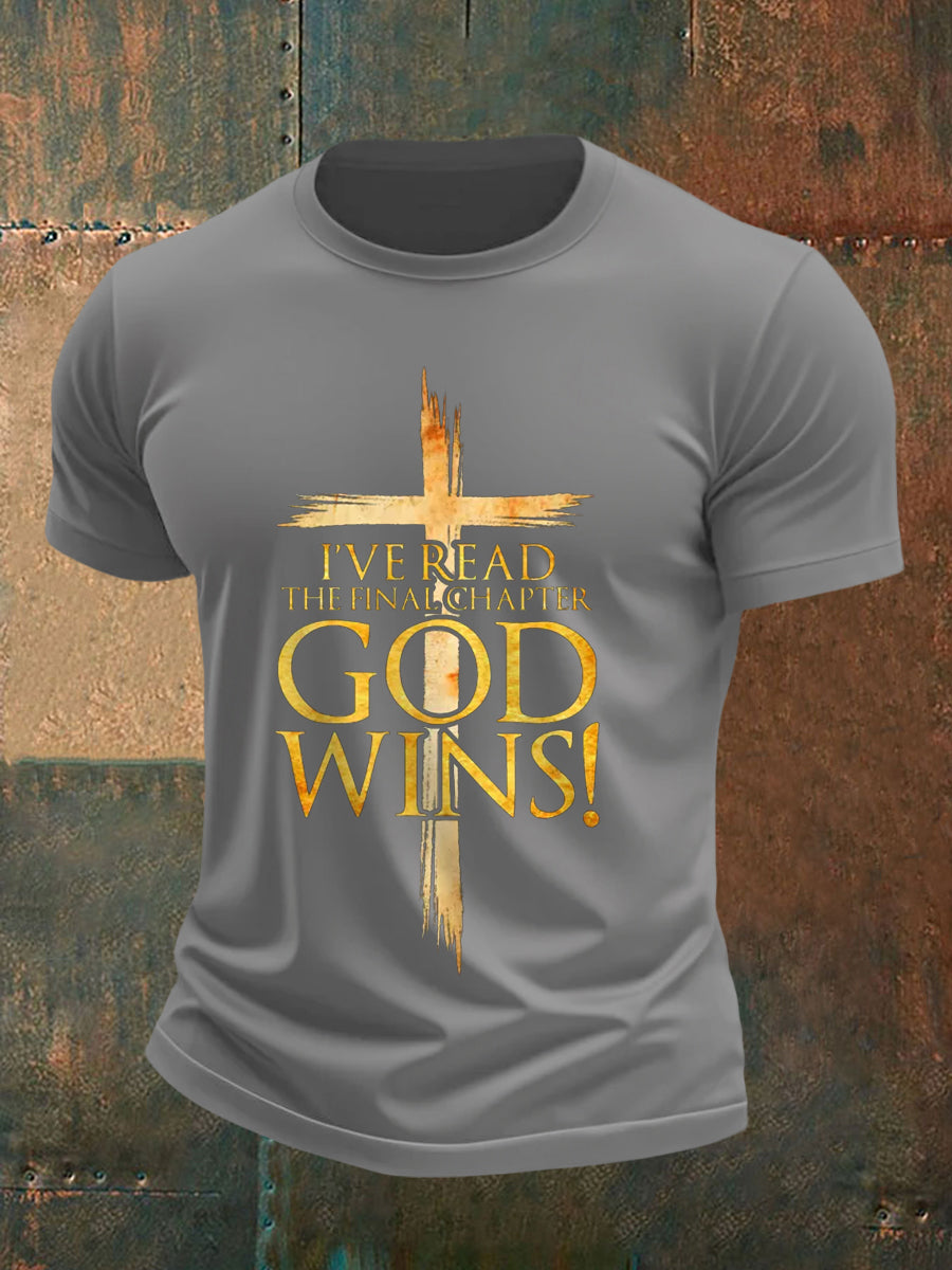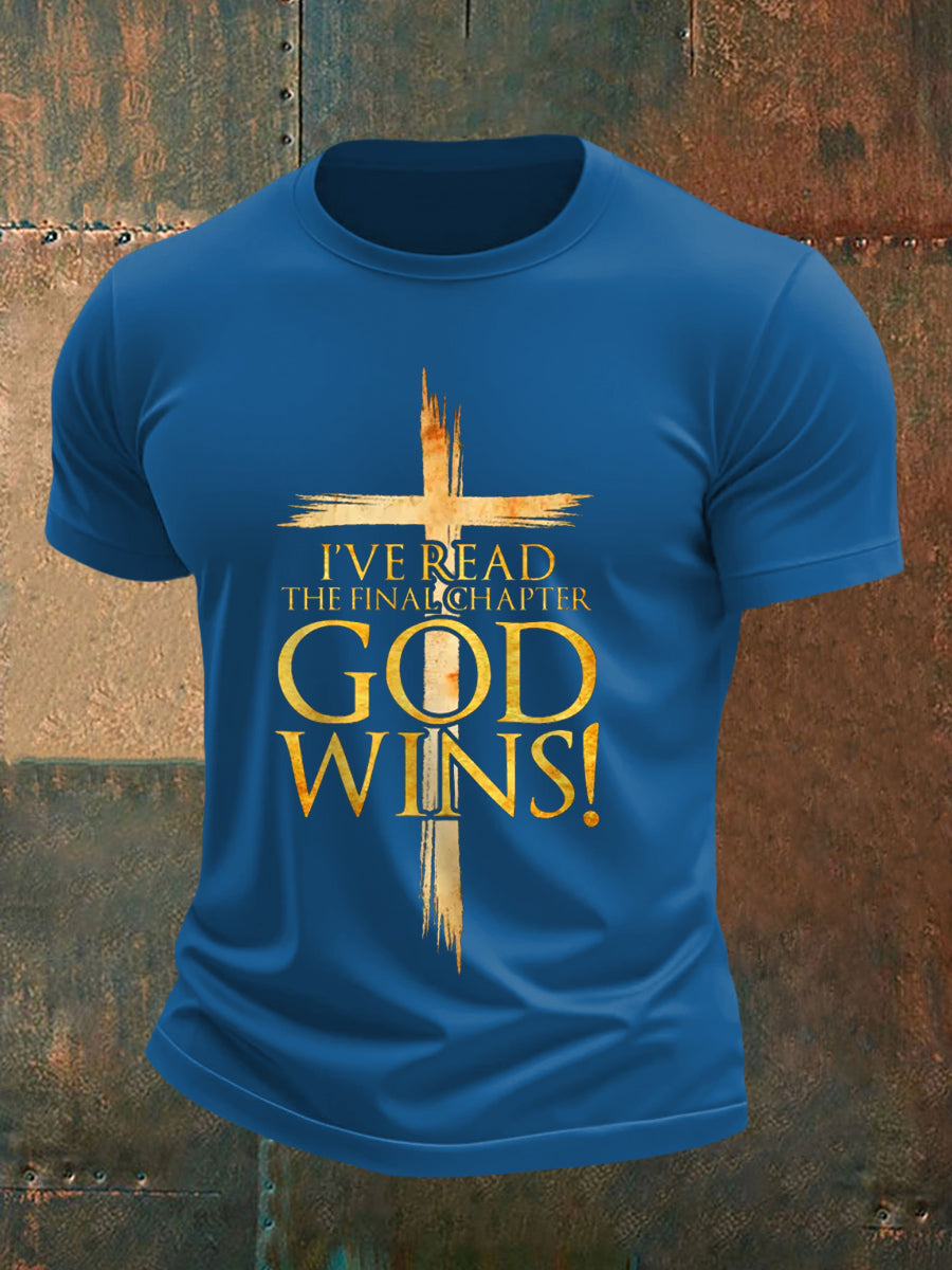 Men's I've Read The Final Chapter God Wins Christian Faith Cross Tee