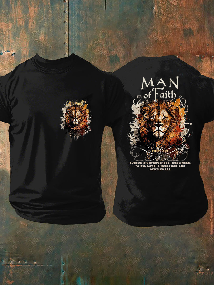 Men's Man of Faith Lion Printed Casual T-Shirt