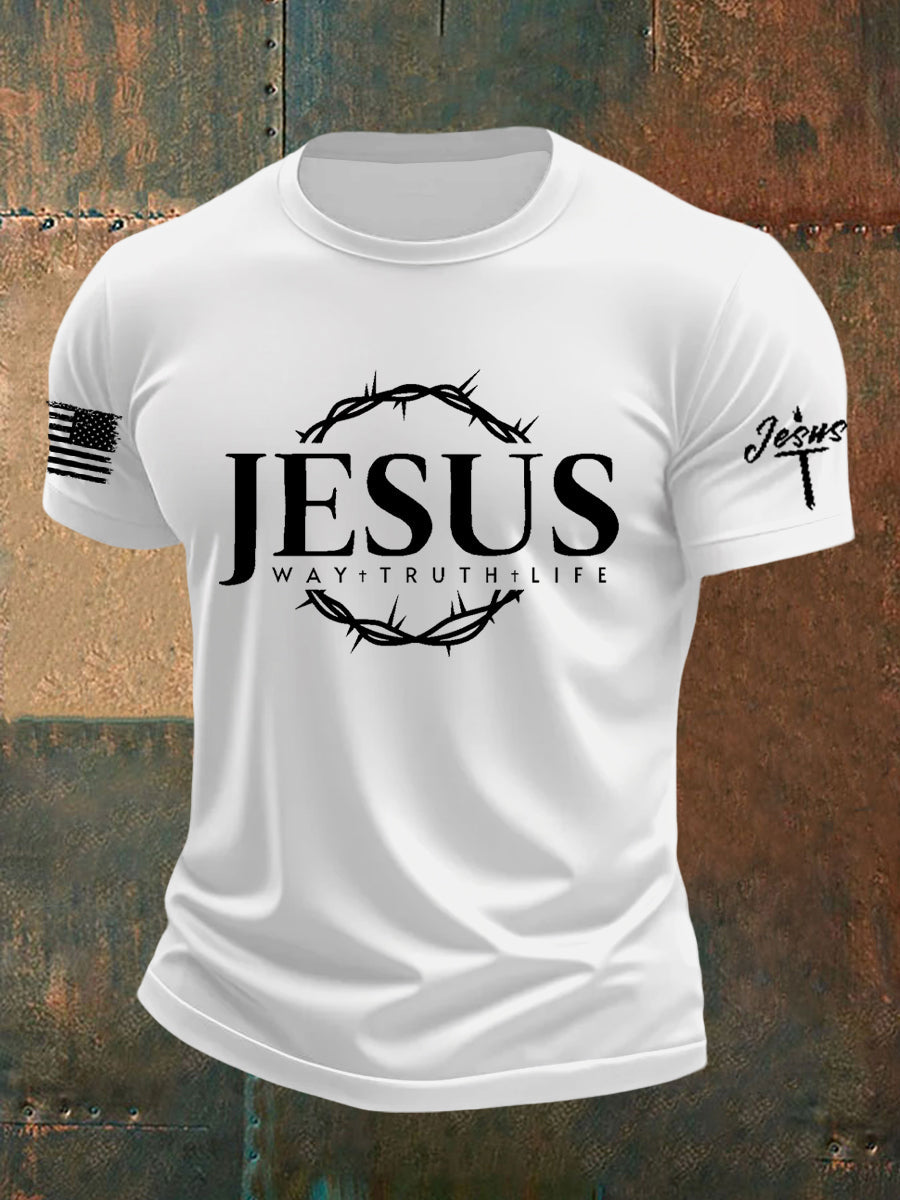 Men's Men's Jesus Faith Cross Print Casual Short Sleeve T-shirt