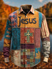 Men's Retro Casual Faith Cross Art Print Long Sleeve Shirt