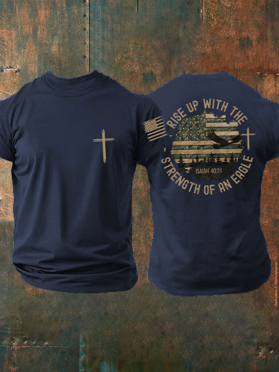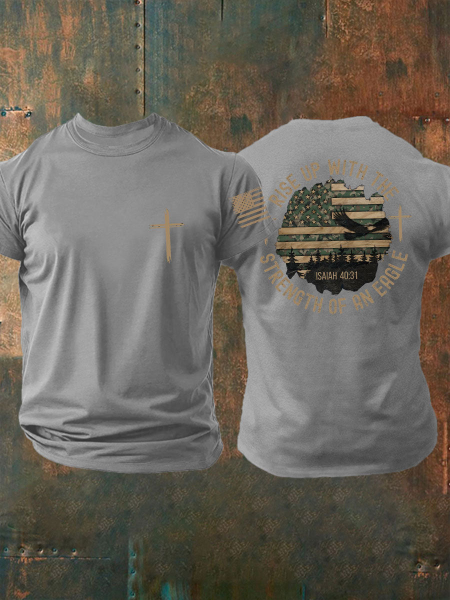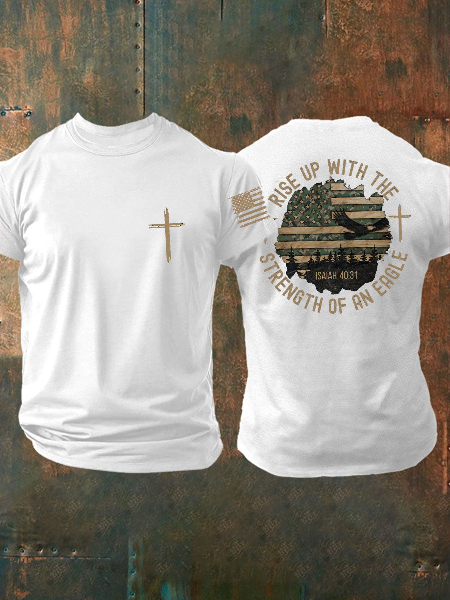 Men's Rise Up With The Strength of An Eagle Printed Casual T-shirt