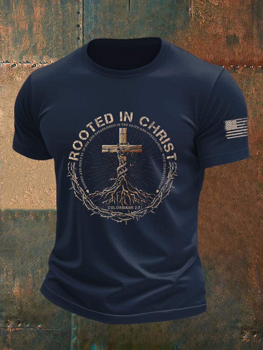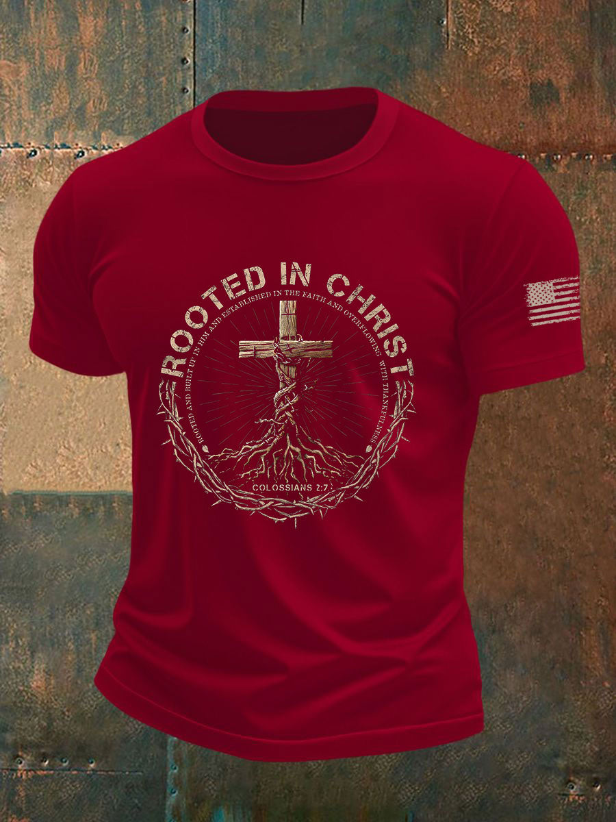 Men's Rooted in Christ Printed Casual T-shirt