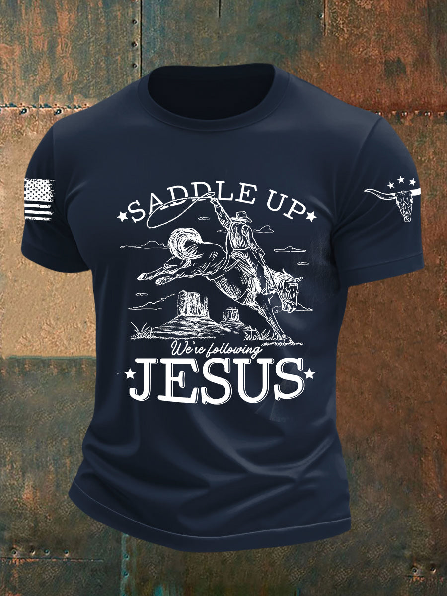 Men's Saddle Up We're Filling Jesus Short-sleeved T-shirt