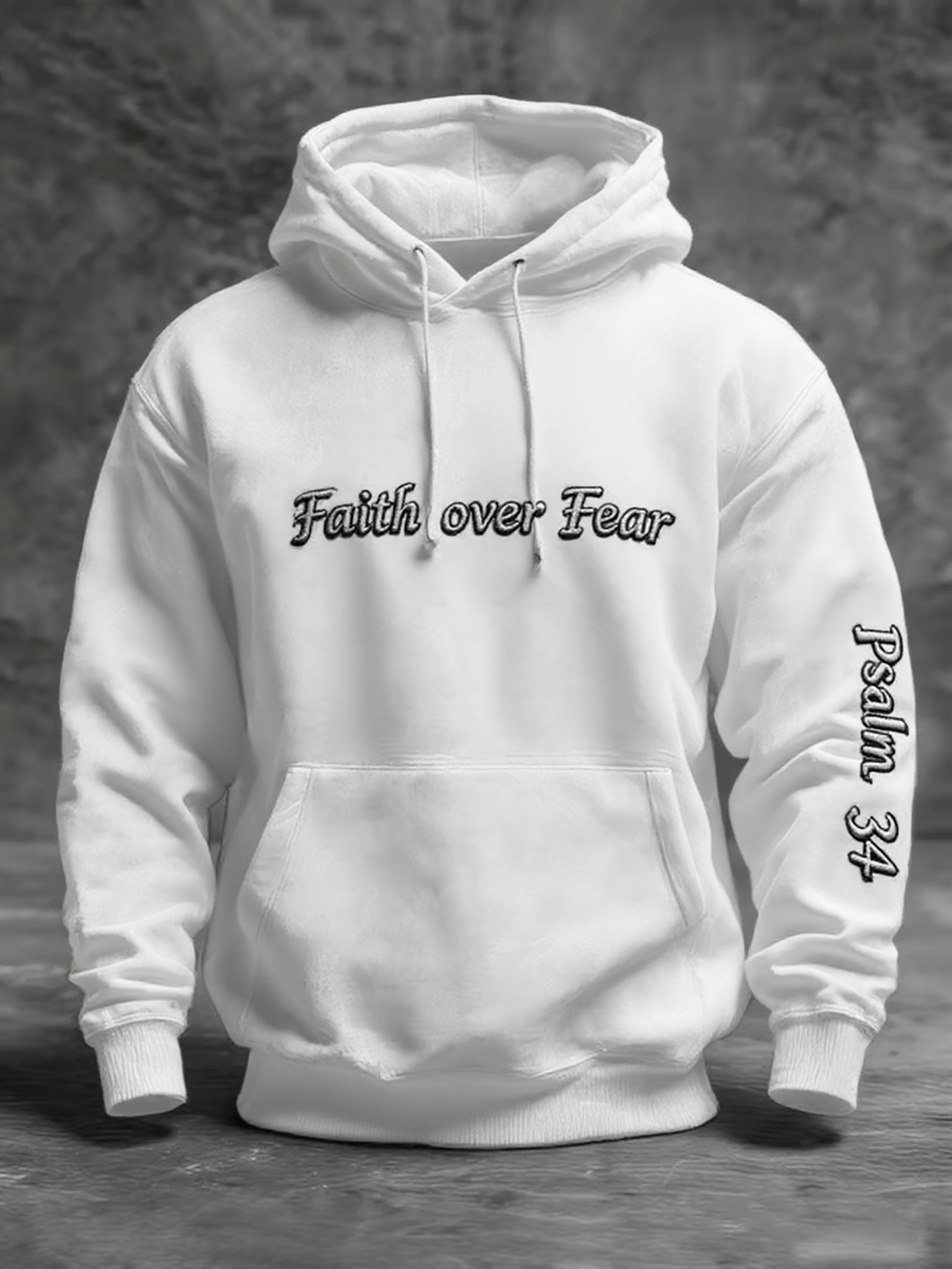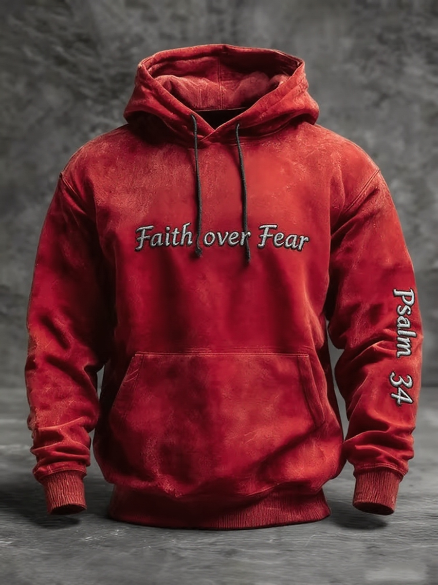 Men's Vintage Cross Faith Over Fear Psalm 34 Print Hoodie
