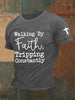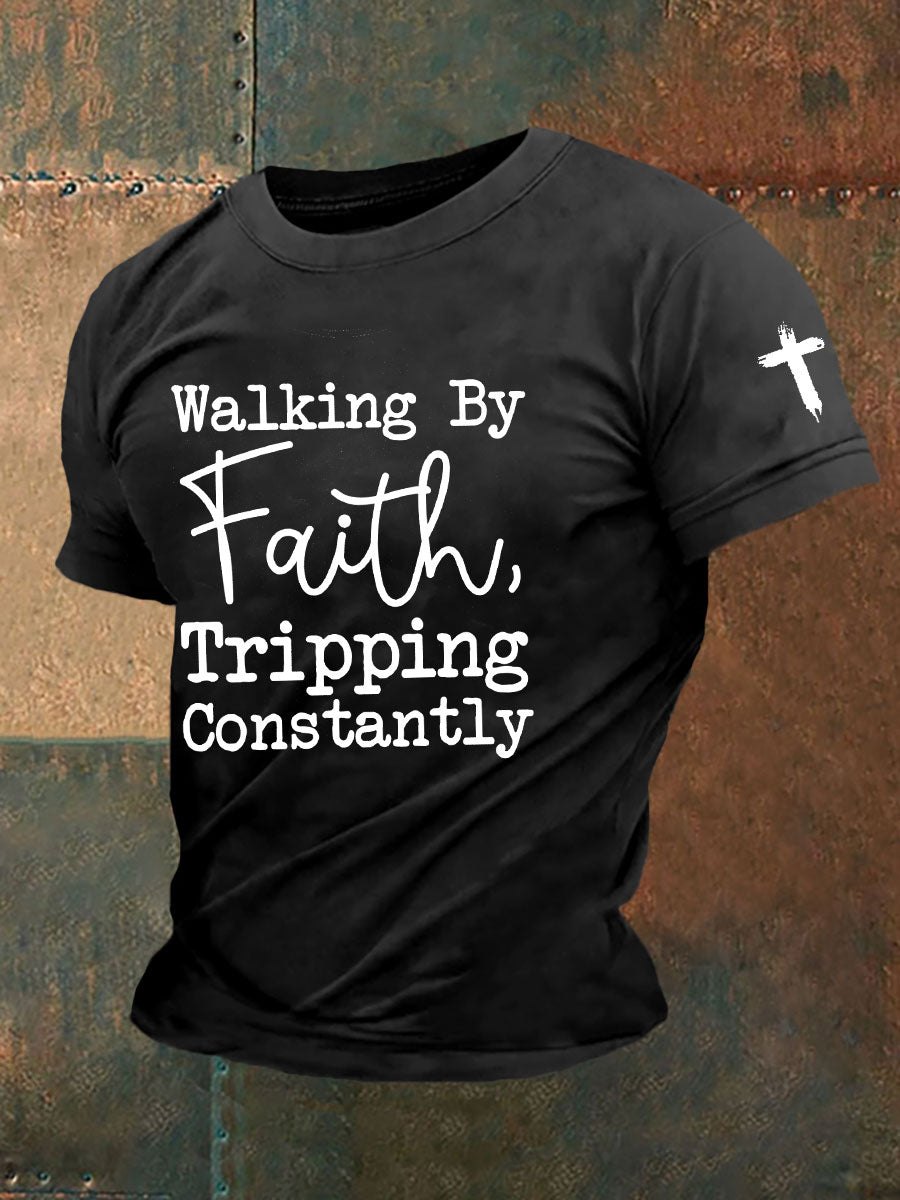 Men's Walking By Faith Tripping Constantly Printed Casual T-Shirt