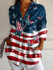 Women Independence Day America Flag Casual Long Sleeve Shirt