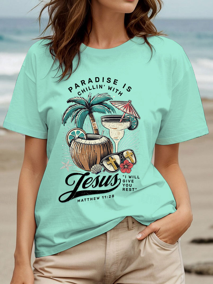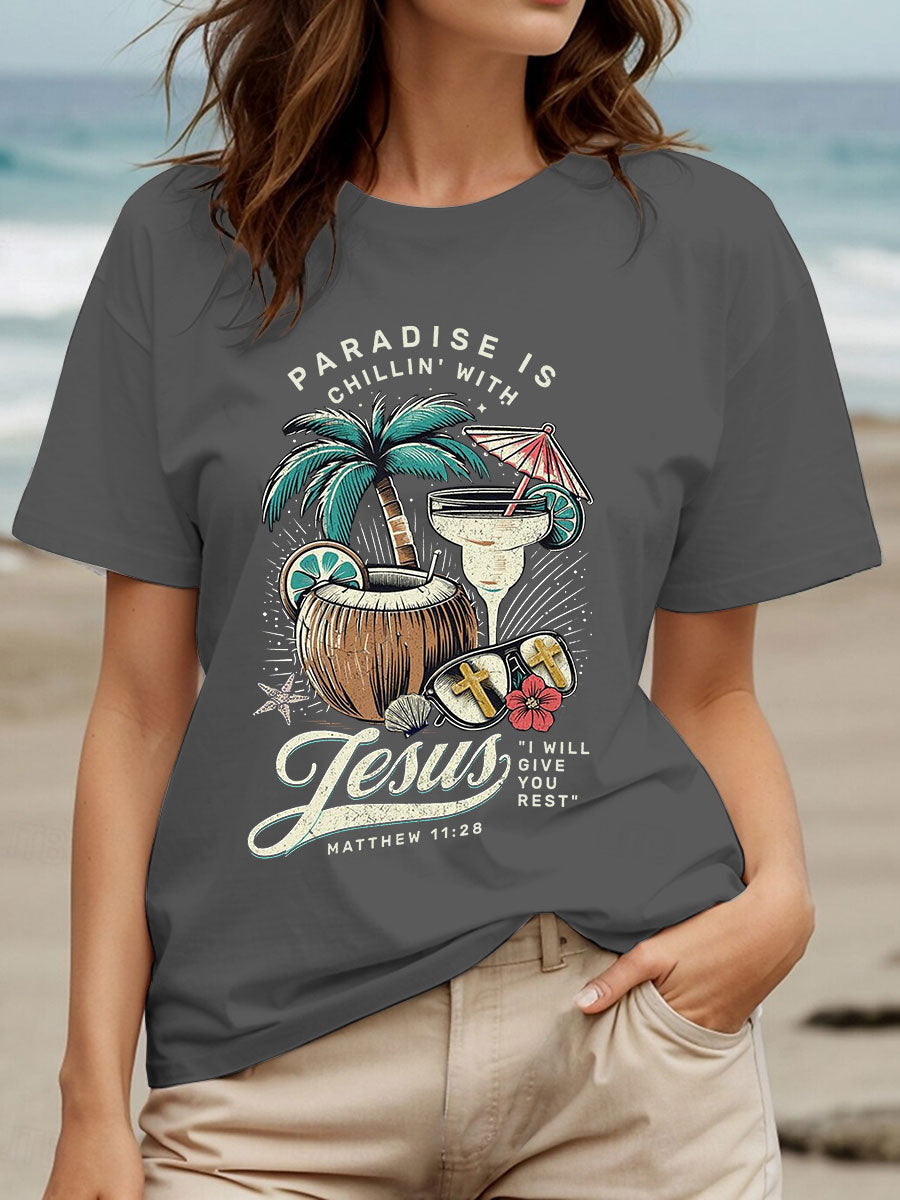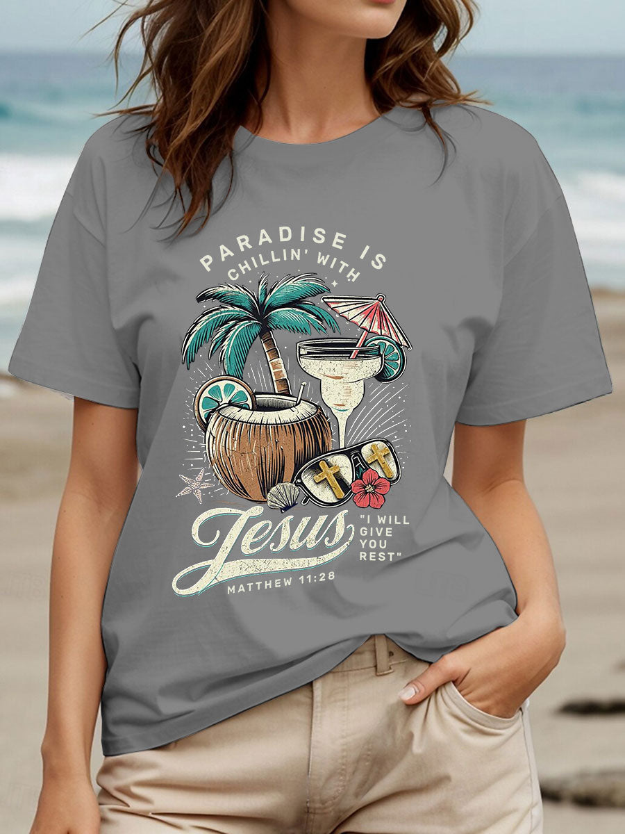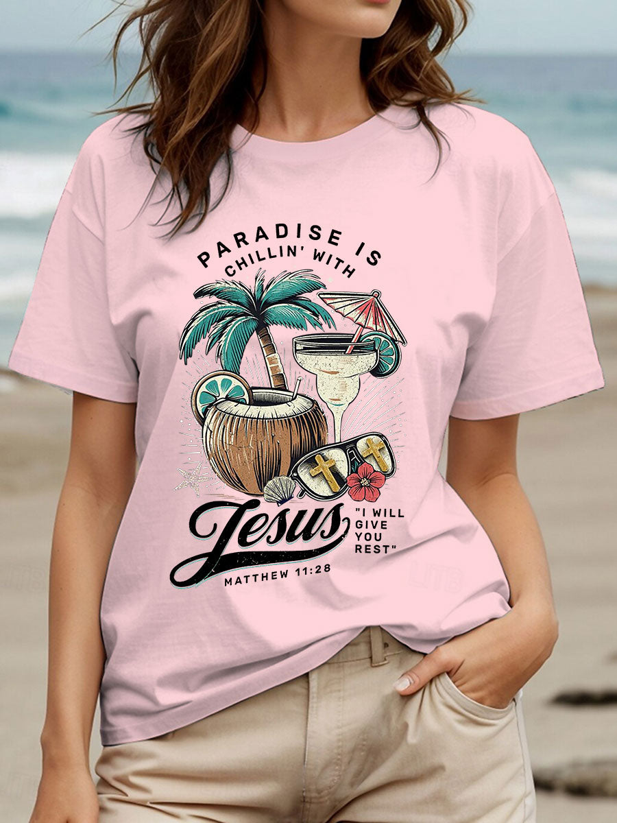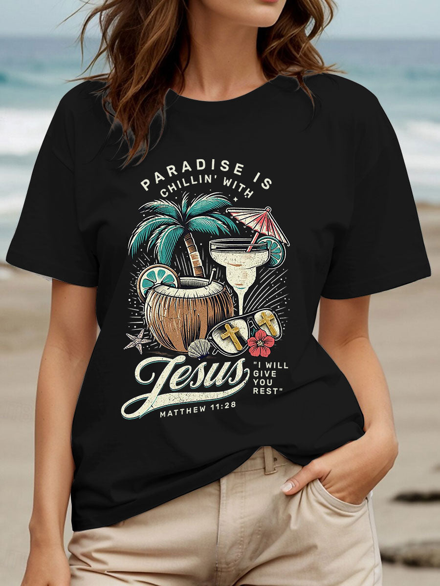 Women's Chillin' With Jesus Printed Casual T-Shirt