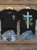 Women's Faith Cross Leaf Print T-shirt