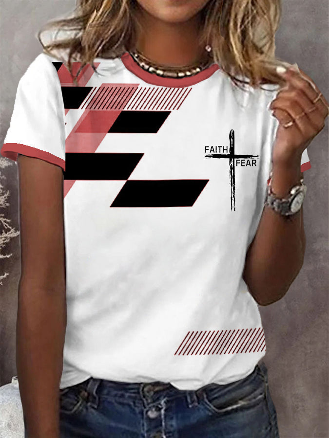 Women's Faith Over Fear Cross Faith Geometric Print Casual Tee