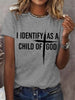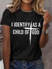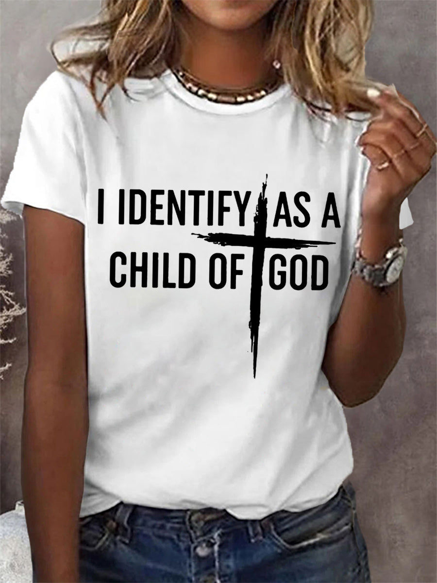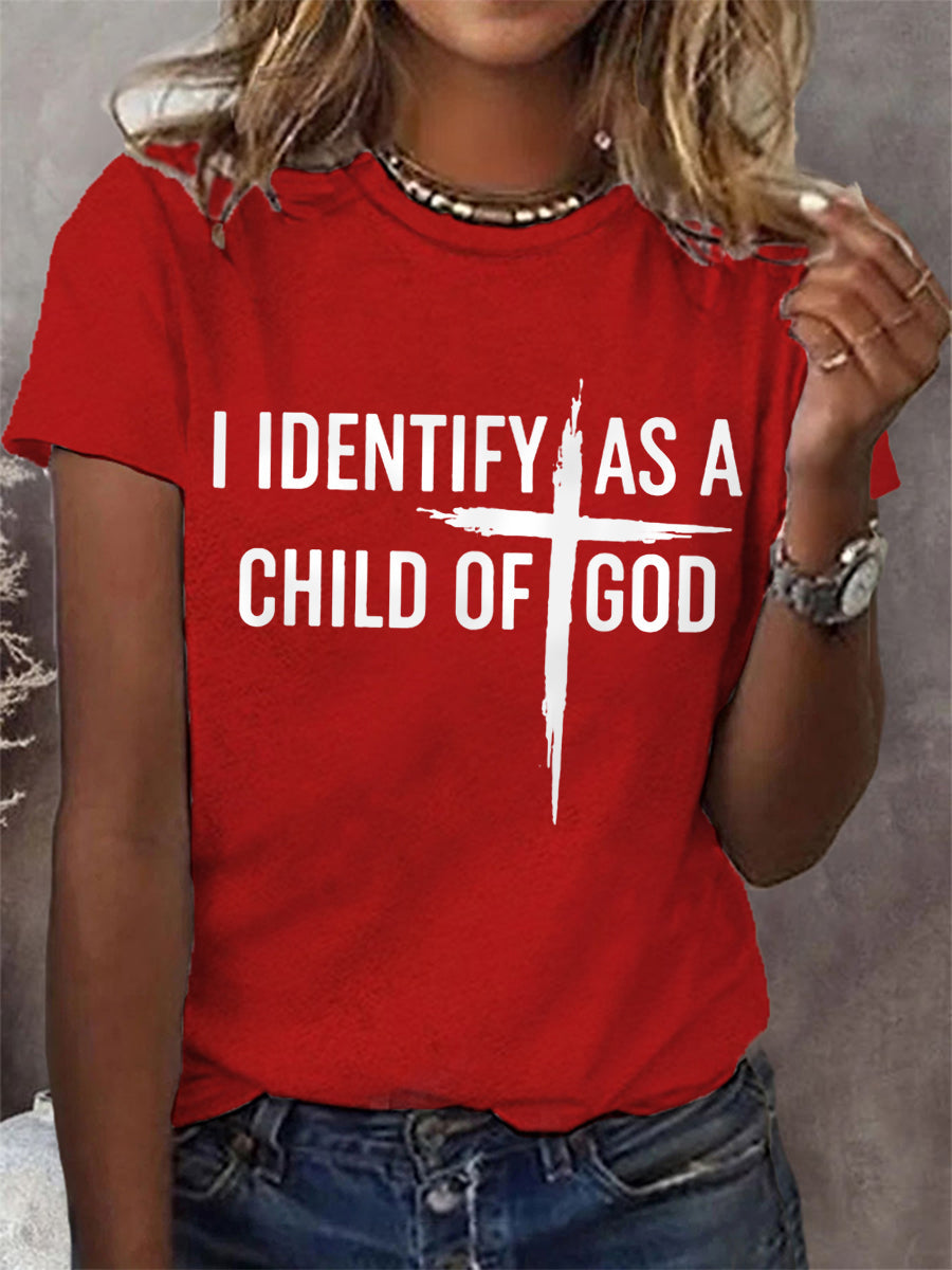 Women's I Identify As A Child Of God Christian Cross Print Casual Tee