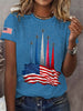 Women's Independence Day American Flag Jet Planes Print Casual Tee