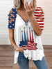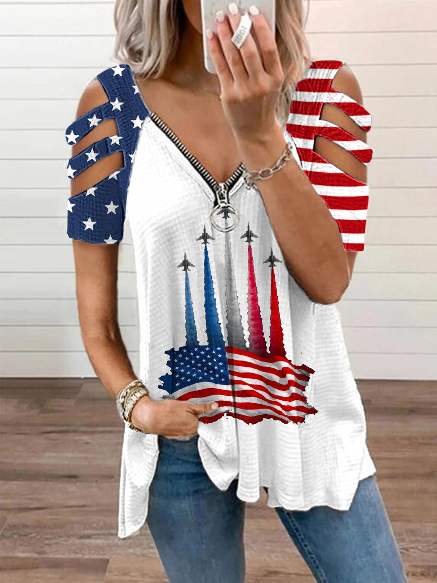 Women's Independence Day American Flag Jet Planes Print Casual Zipper V-Neck  Top
