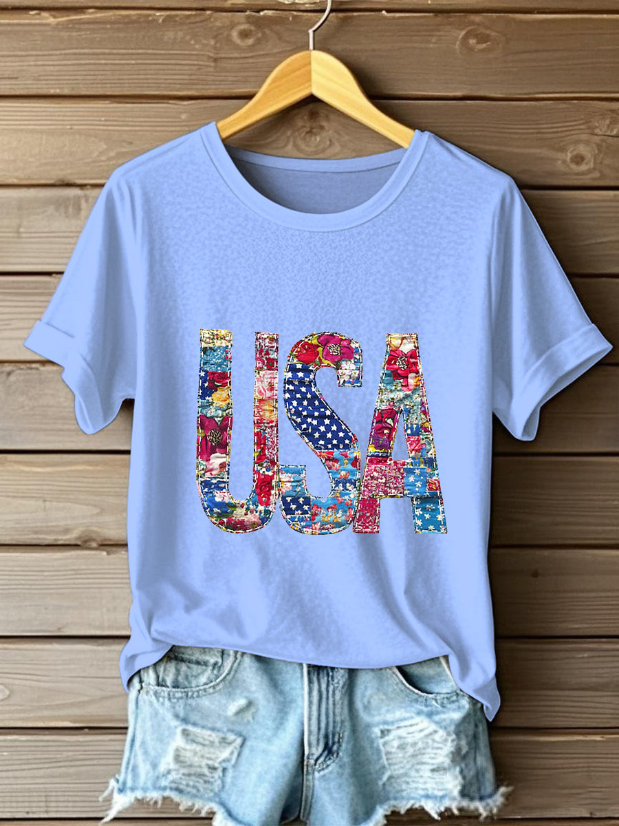 Women's Independence Day Retro Patchwork Flag Short-sleeved T-shirt