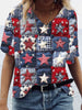 Women's Independence Day Retro Patchwork Stars and Stripes Print T-Shirt