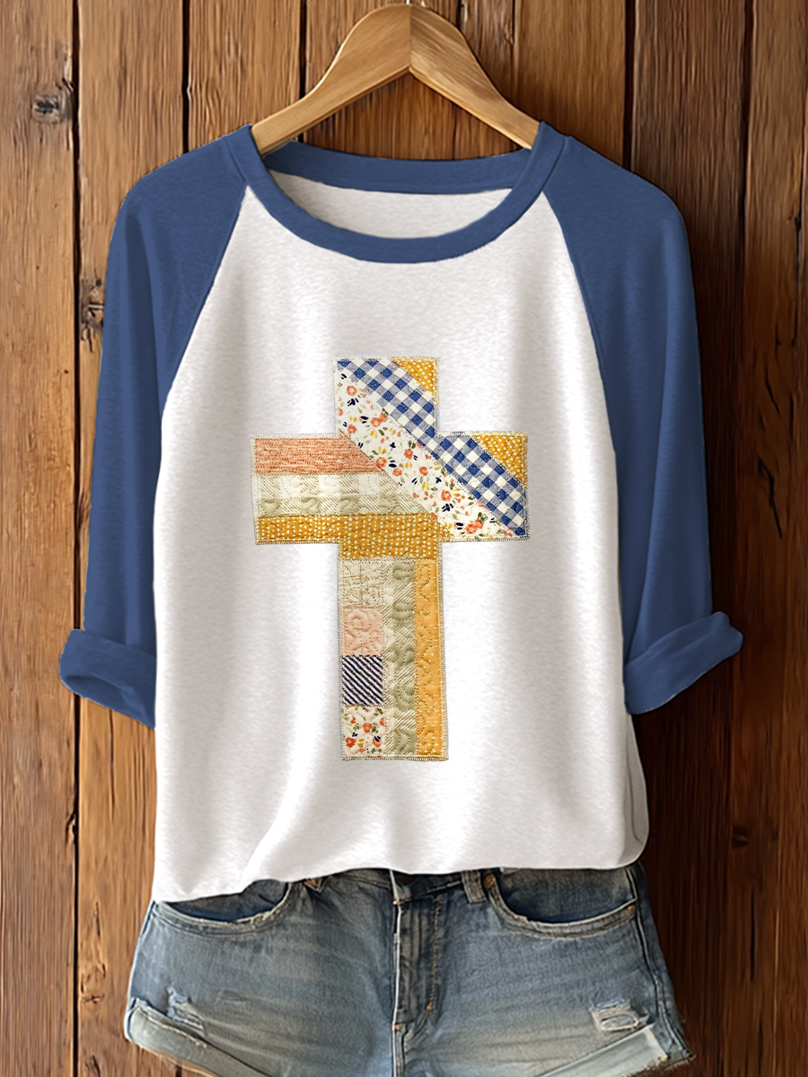 Women's Patchwork Art Cross Print Casual T-shirt
