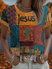 Women's  Retro Casual Faith Cross Art Print Short Sleeve T-shirt