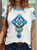 Women's Stained Glass Floral Faith Cross Print T-Shirt