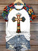 Women's Stained Glass Floral Faith Cross Print T-Shirt