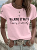 Women's Walking by Faith Tripping Constantly Cross Short Sleeve T-Shirt