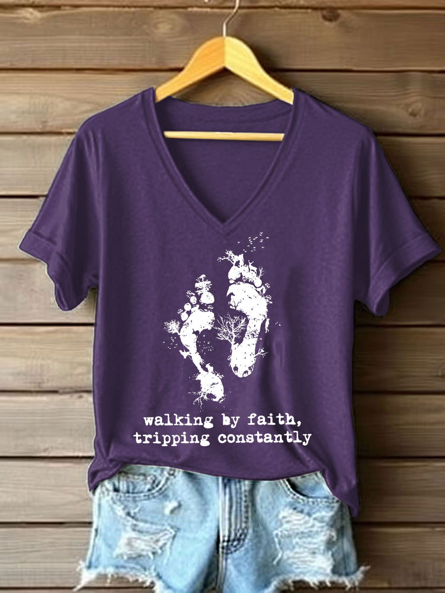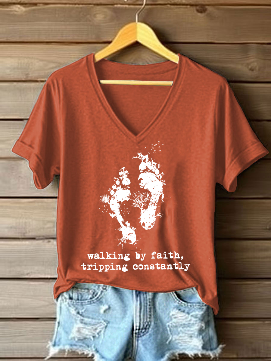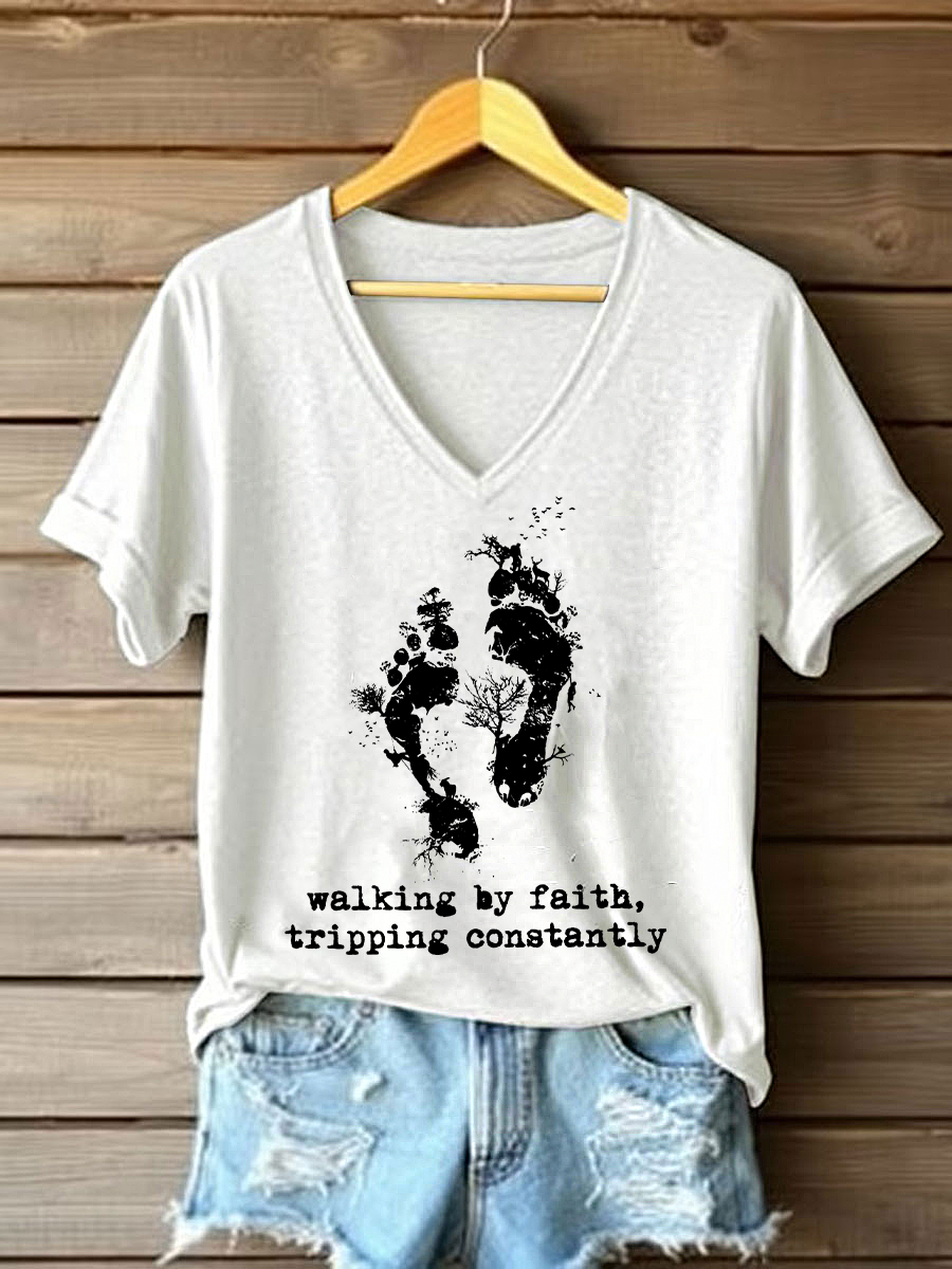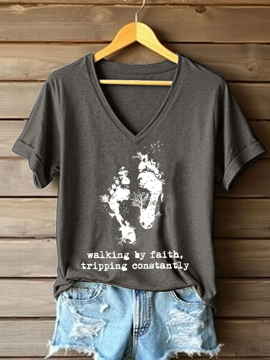 Women's Walking By Faith Tripping Constantly Printed Casual T-Shirt
