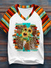 Women's Western Christian Cross Faith Print Casual V-Neck Tee