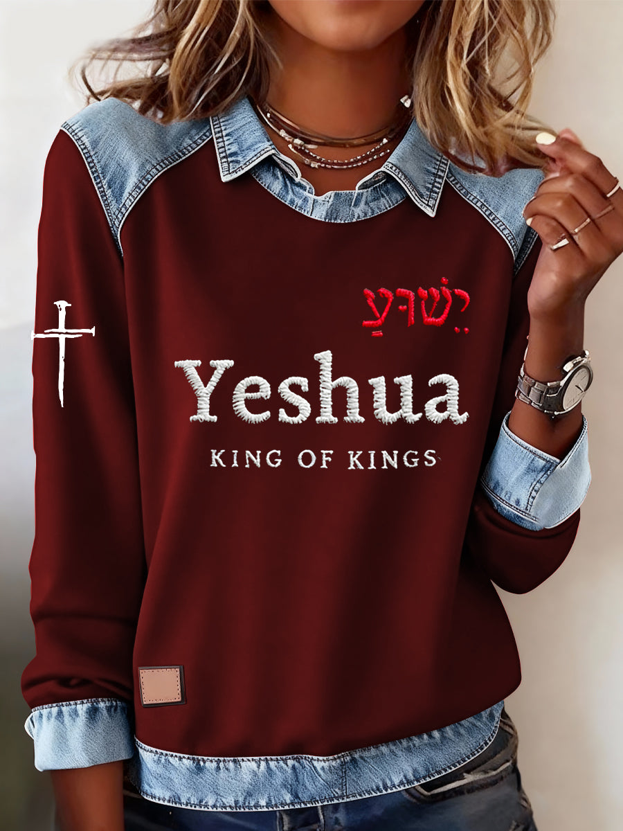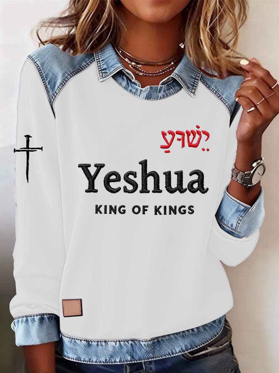 Women's Yeshua King Of Kings Cross Casual Loose Long Sleeve Top